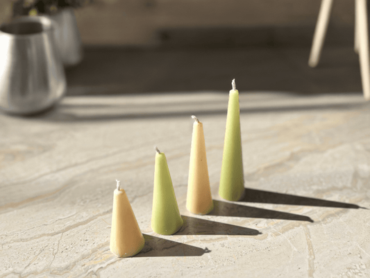 SOE Kulfi Scented Cone Candles: White and Pista Green (Set of 4)