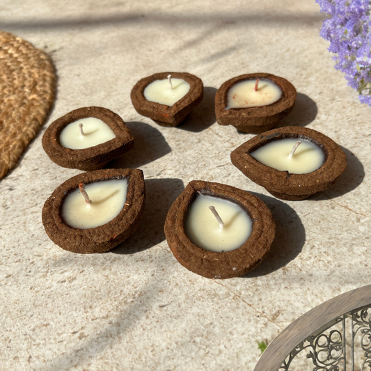 SOE Scented Organic Gobar Soy Wax Diya (Set of 6)