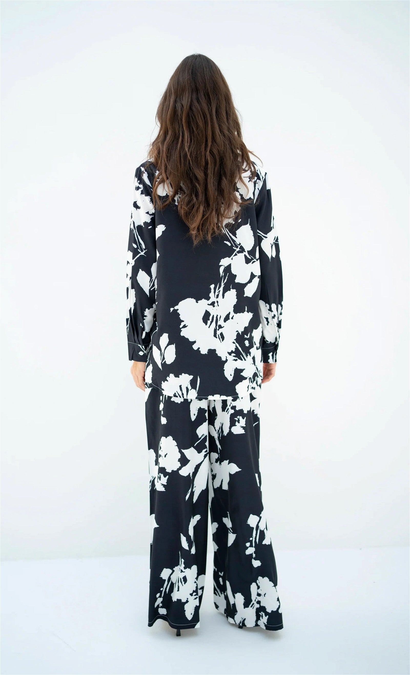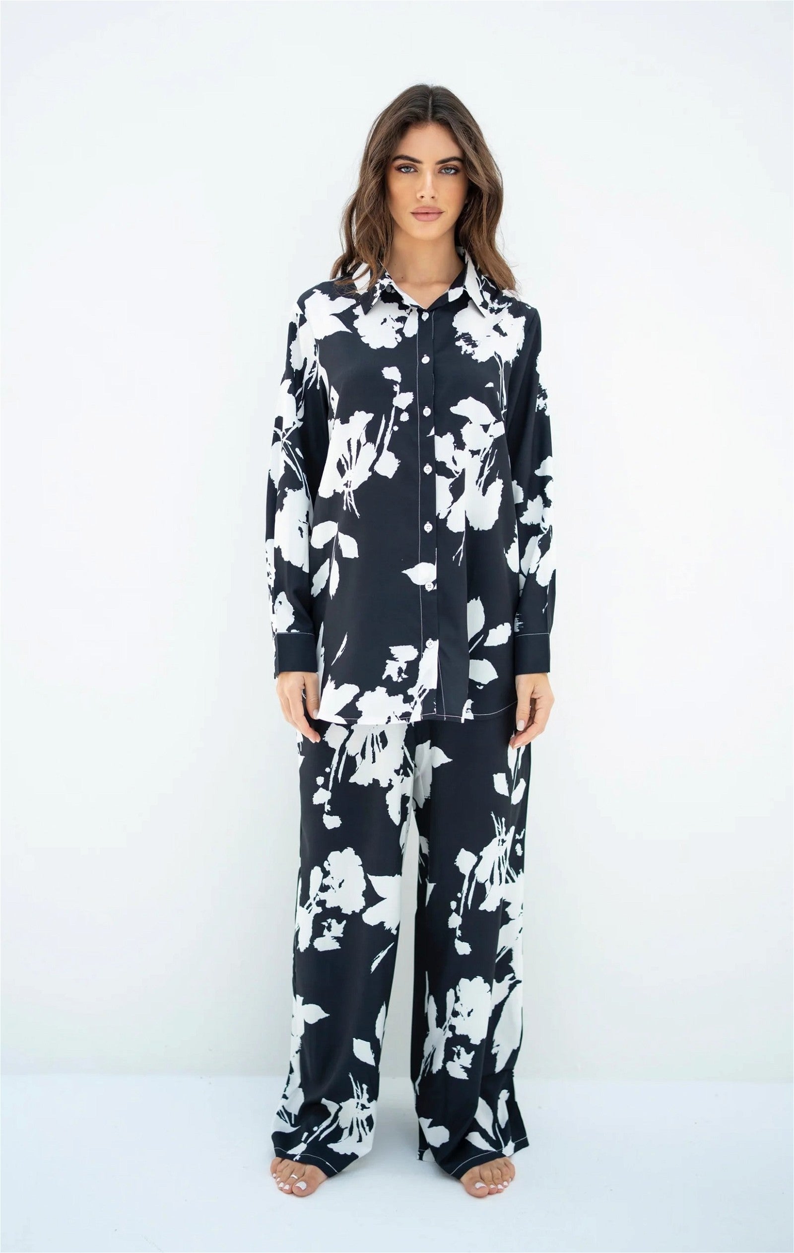 Black Floral Print Korean BSY Classic Co-Ord Set For Women