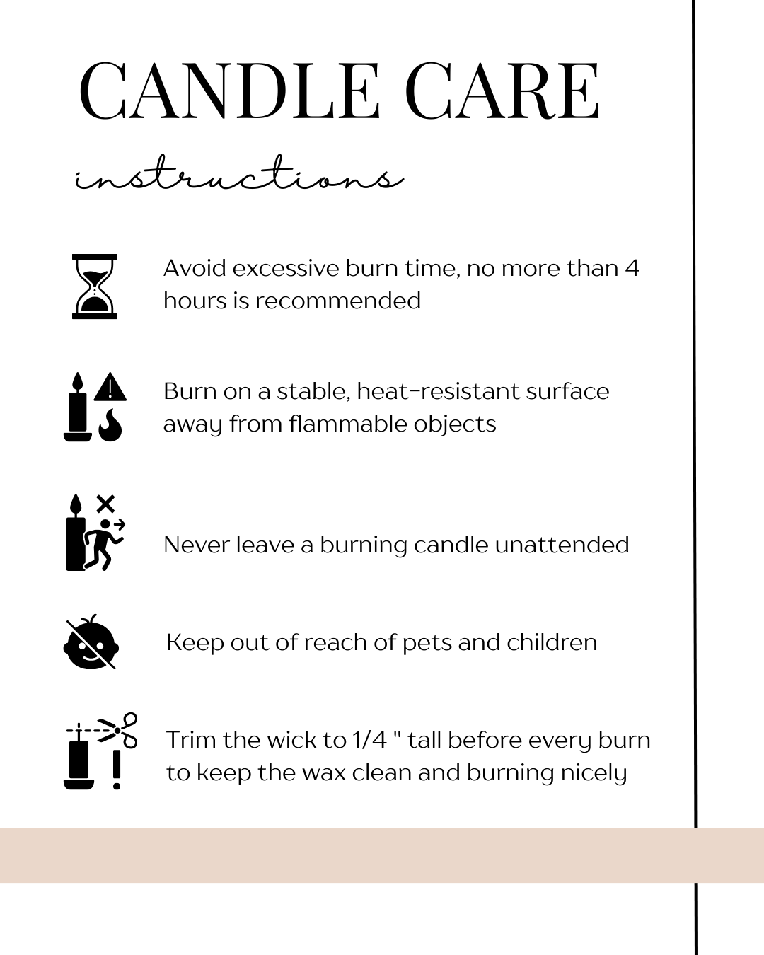 - Long Burn Time: Thanks to the superior quality of our wax blend, our candles offer an extended burn time, allowing you to enjoy their fragrance for hours on end.